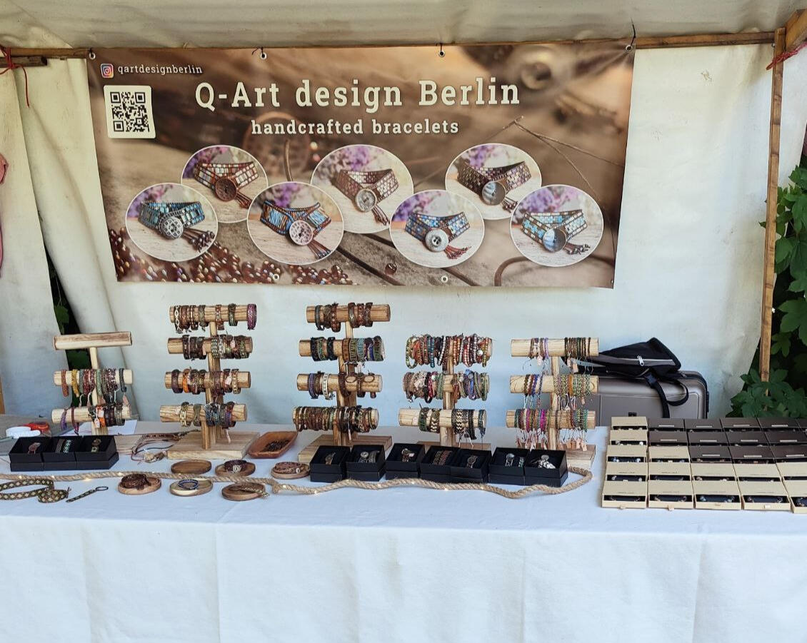I create one-of-a-kind bracelets, mainly using fine leather cord and high-quality Japanese glass beads.Each piece is handmade and individually designed, inspired by earthy tones, natural materials and the freedom to create. No repeats, no mass production.What started as a hobby became a passion after I moved to Berlin, and here I am.